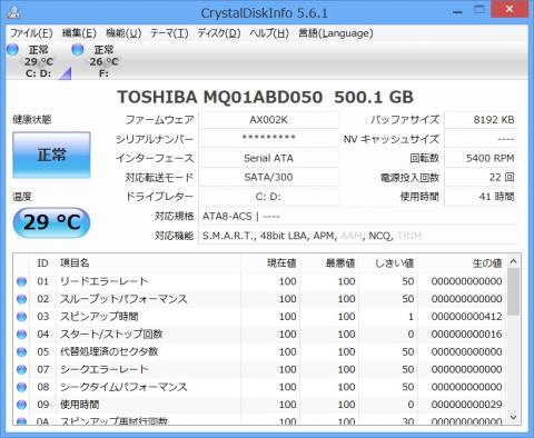 ・ハードディスク:500GB 2.5”Serial-ATA HDD