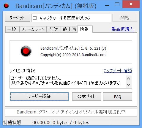 ※無料版ではキャプチャーした動画ファイルにロゴが表示されたり、キャプチャー可能時間が制限(10分)されたりしますが目的によっては十分使えます。