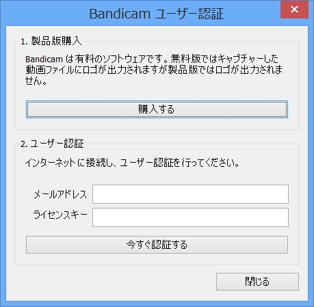 「Bandicamでキャプチャーした動画をスムーズに再生するには、Bandicamまたは内蔵されているコーデック(BandisoftMPEG-1コーデック)が必要です。インストールしてください。」