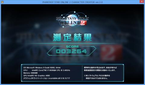 先ずは「PSO2キャラクタークリエイト体験版 ver.2.0」でスコアの確認!