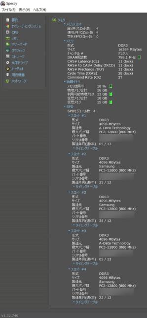 4GBのDDR3 PC3-12800メモリを2枚を追加して8GBから16GBへ。余程のことがなければこれで十分なはず。