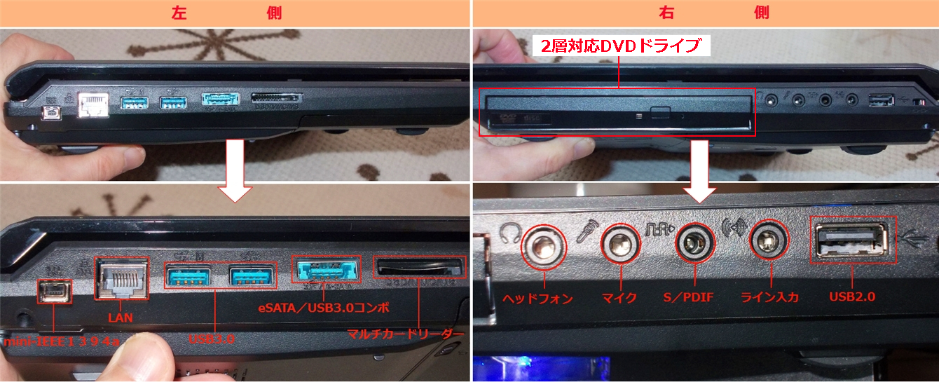 DVDも2層対応とデスクトップいらずのハイスペック、上の写真では分かり