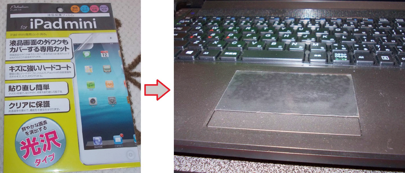 100ショップにてiPadmini用光沢フィルムを購入、タッチパネルへ