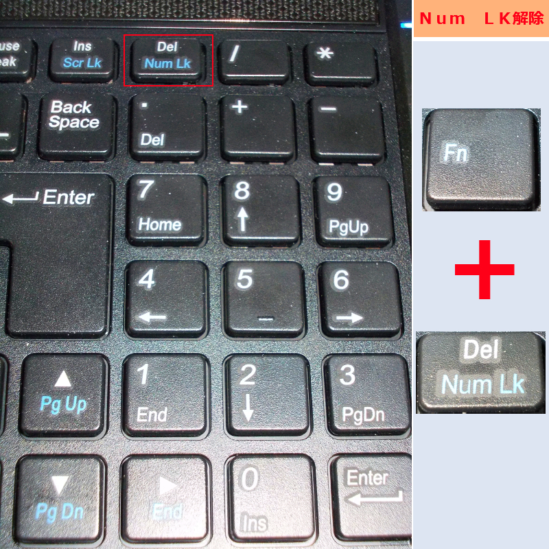 Num LK解除には『Fn』と『Num LK』同時押しが必要。