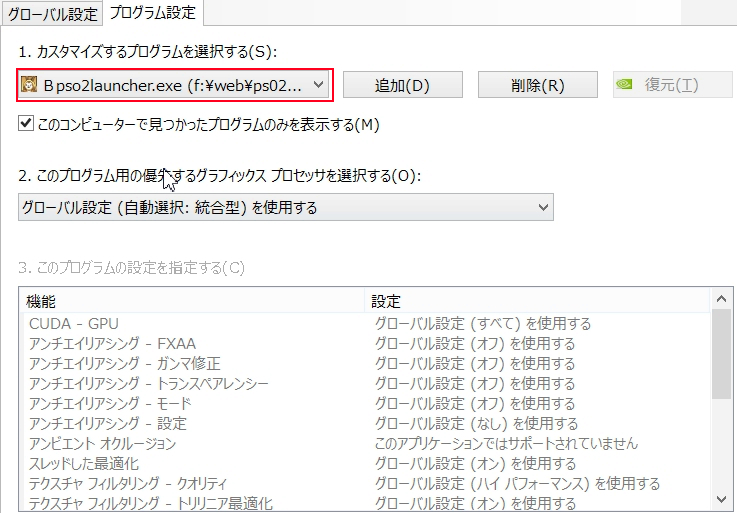 ①に関しては3D設定でのグラボ優先が変更されず、自動のままなので
