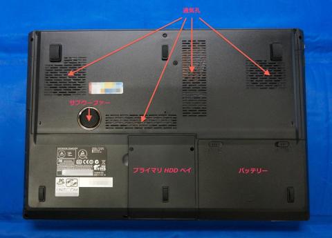裏面はゲーミングノートPCということで、廃熱に気を遣った通気口が