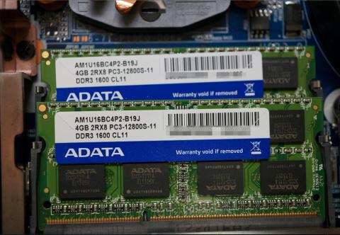 メモリは ADATAの DDR3 1600 4GB×2枚が入っていました。