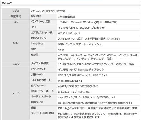 この度、ViP Note CL6X1W8-N67MX ノートPC のレビューを