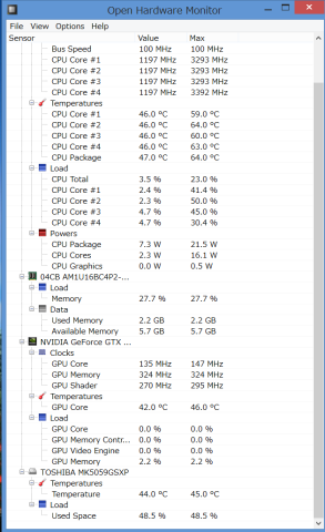 HDDは TOSHIBA製の 5400RPM 500GB です。