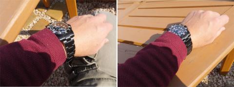 私の会社の社長が前の型のサブマリーナーデイトを持っているのですが(デイトナも持っている!)、並べてみると全くの別物のようです。同じ種類の時計には見えません。社長、ごめんなさい、私のほうがカッコイイ!