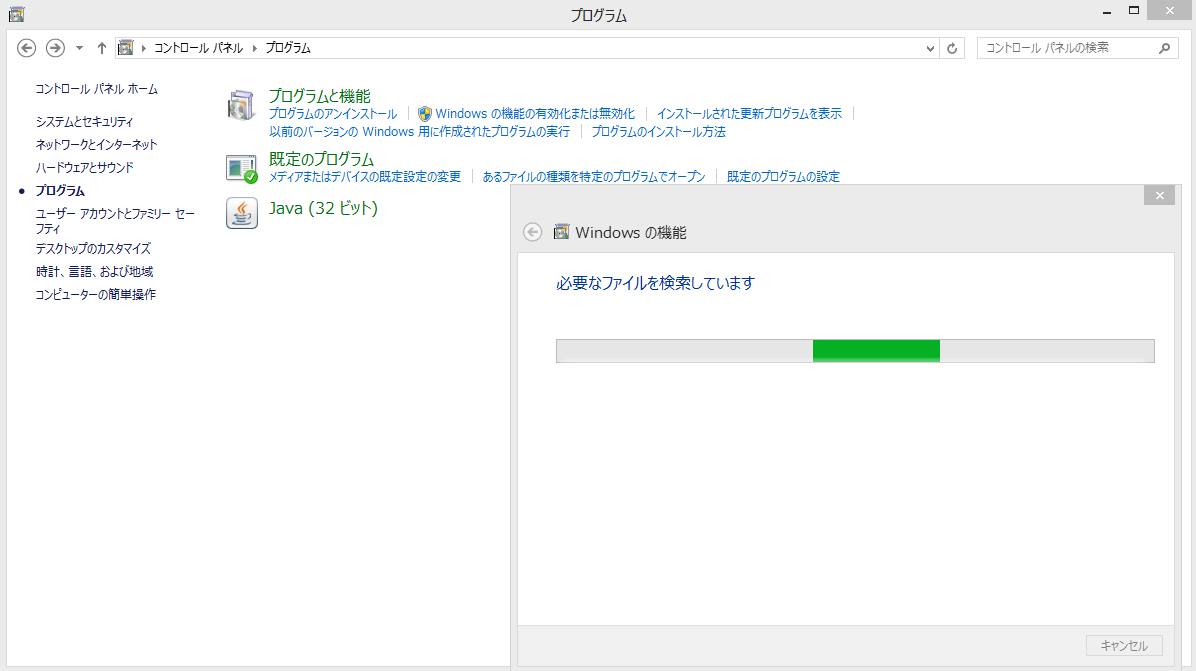4:有効化して「OK」を押すと、「必要なファイルを検索しています」と表示されます。少し待つと、再起動を求められるので再起動します。