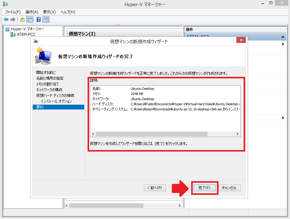 16:これで仮想マシンの作成が完了しました。