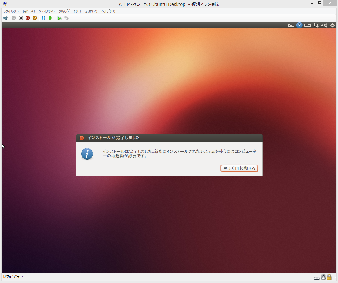 18:バックグラウンドで「Ubuntu Desktop」が起動しました。