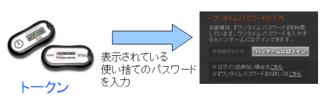 時間限定の1回きり使い捨てパスワードがトークン毎に異なる値で発行されますので、トークンを所有している人にだけが正しいパスワードを入力できることになります。