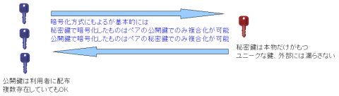 秘密鍵はデジタル署名の発行元だけが所有するユニークな鍵であり、外部に公開することはなく。公開鍵は多くの利用者に提供できるよう複数個存在していても問題ありません。