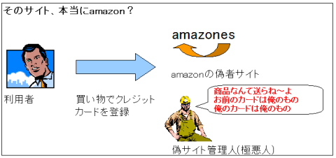 amazonへのリンクが犯罪者によって作られたそっくりな偽者サイトへのリンクだったとしたら、クレジットカード情報や個人情報を抜き取られますよね。