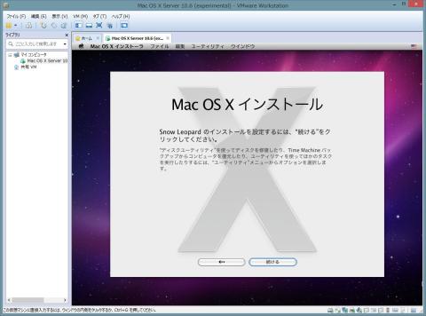 Mac OS X Server 10.6 (experimental).vmxを指定しよう(頭に.がない方ね)