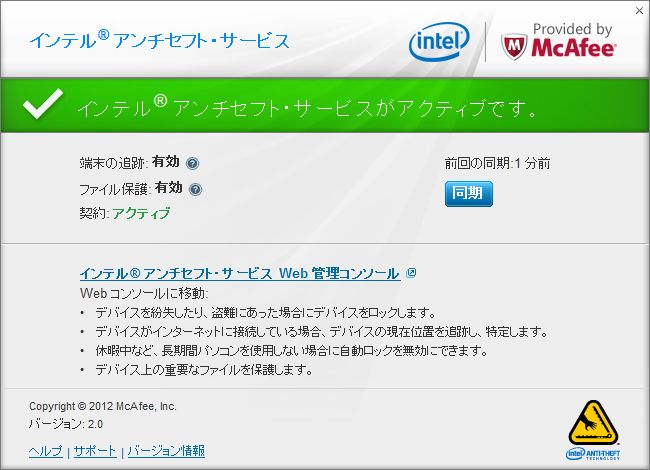 インテル® アンチセフト・テクノロジー(インテルAT)は、単独では動かないシステムで、サービスを提供してくれるセキュリティー会社との契約が必須のシステムである