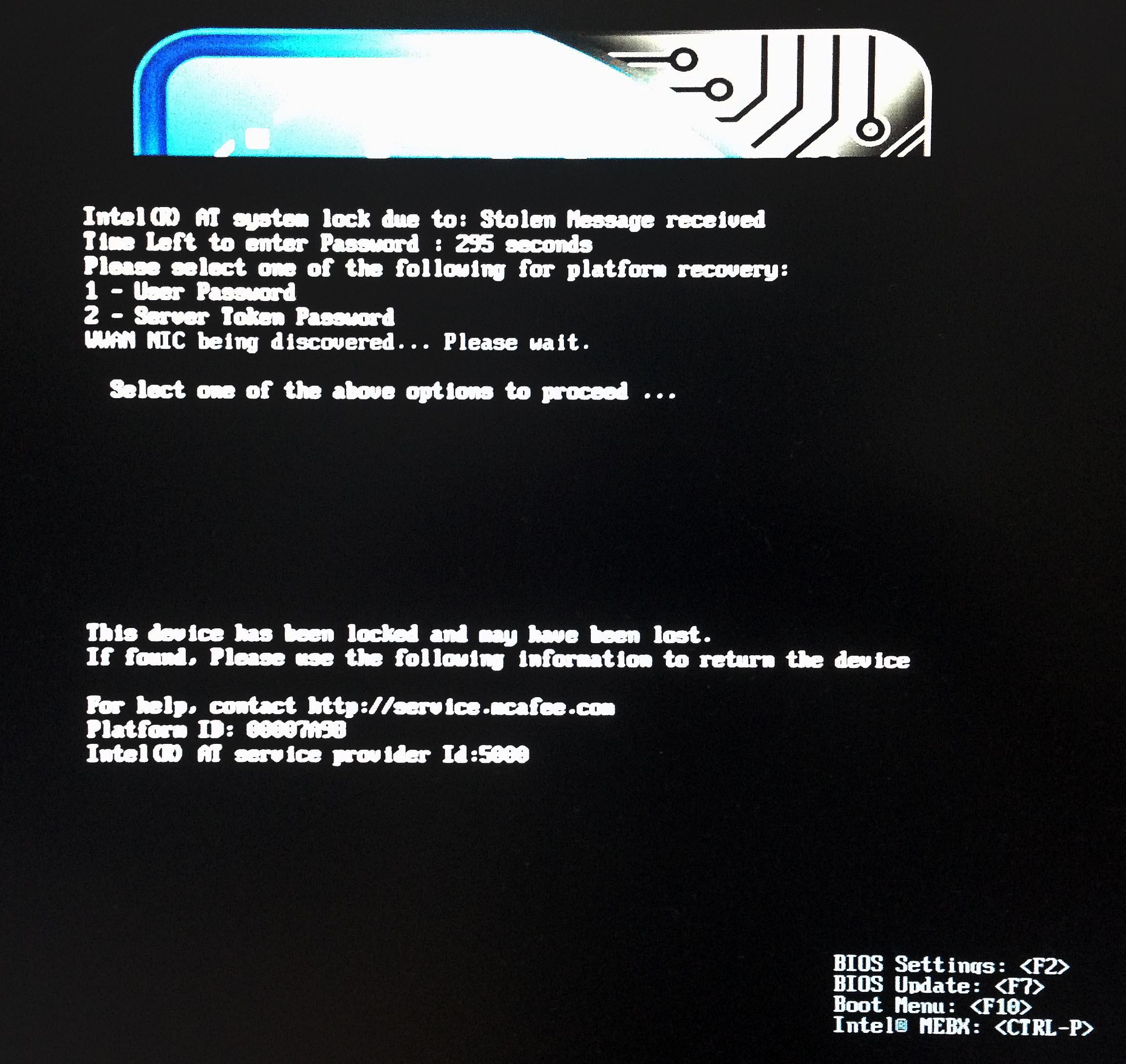 1. 起動時認証に連続して失敗する場合がある。この場合は既定回数を超えると直ちにインテルATによりパソコンはロックされる様に設定が出来る。(今までも同じような仕組みはあった)