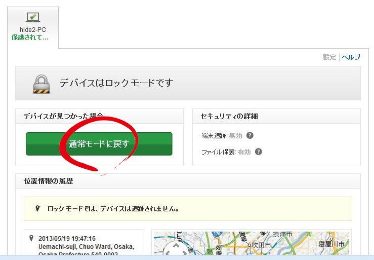 アンチセフトサービスのアイコンが復活していると思うので、管理画面を出して同期ボタンを押します