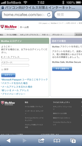 ここのページからダウンロードするとMcAfeeインターネットセキュリティーにジャンプする