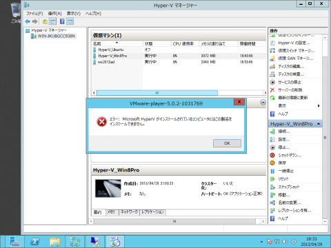 ・Vmwareを使ってWindows7上でWindows8を動かす