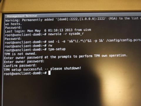 今回はXenClientXTを利用してTXTの機能の一つである、仮想マシンモニタのMeasuredLaunchを設定しました。設定は簡単な方だと思われますが、BIOS側でTPM設定をする必要があり、Measured Launchが TPMに基づく機能であることが確認できました。