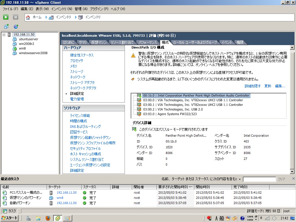 では、VT-dの検証は失敗したのかということになりますが不幸中の幸いうまくパススルーできた物がありました。