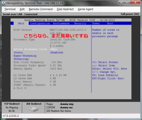 でも、画面が小さくて見辛い・・・。そんな場合は、Manageability Terminal Toolの画面で操作しよう。