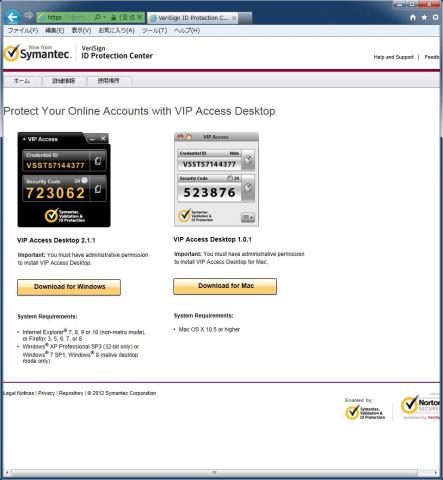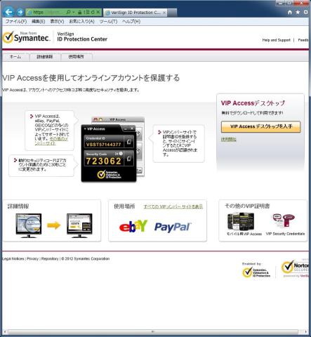 インテルのドキュメントに、シマンテックのVIPソリューションが、インテル アイデンティティー・プロテクション・テクノロジーを使った、2要素認証をおこなっているようなので、このサイトで確認を行いました。