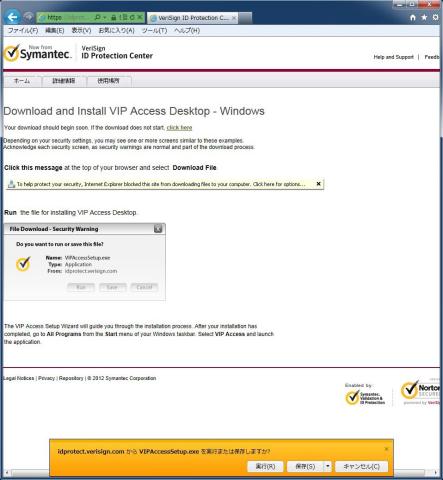 "VIPAccessSetup.exe"を保存し、ダウンロード終了後に、このファイルを実行しました。