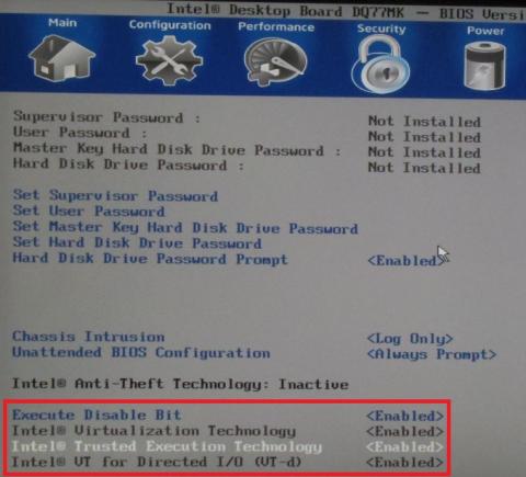Security > Intel@ Trusted Execution Technology : Enable (デフォルト値:Disable)