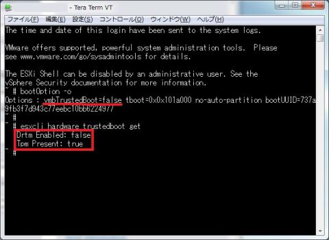 ESXi 5.X系はTrustedBoot関連の設定はEnableがデフォルトです。