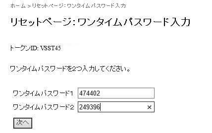 ワンタイムパスワードを2つ,コピー&ペーストして,”次へ”.