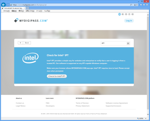 今回、MYDIGIPASS.COMのにてIntel IPTによる認証が確認できました。
