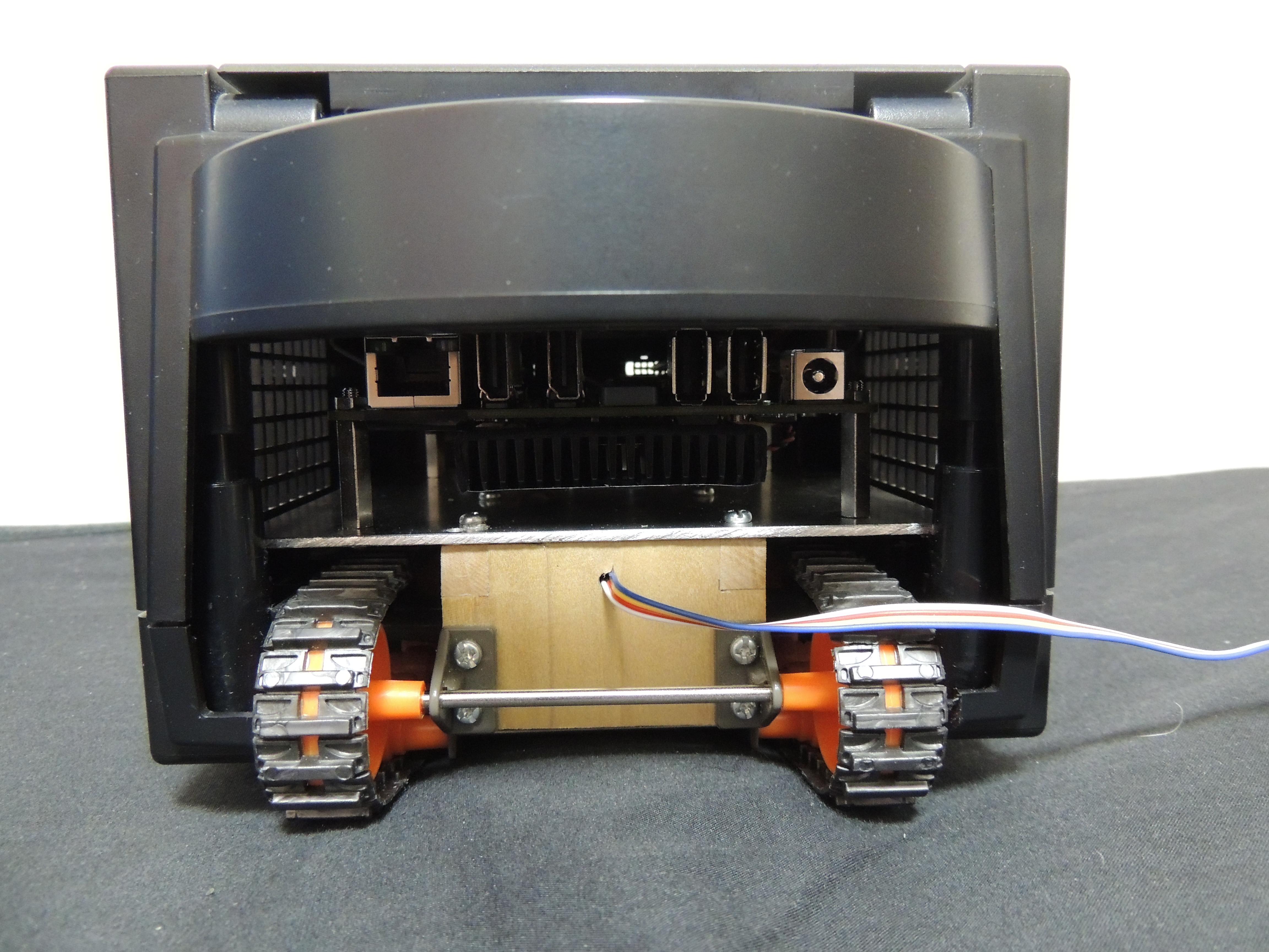 そう言う訳で、まだ筐体内に余裕のあるゲームキューブに、本体を手元まで動かすためのギミックを組み込む事にした。