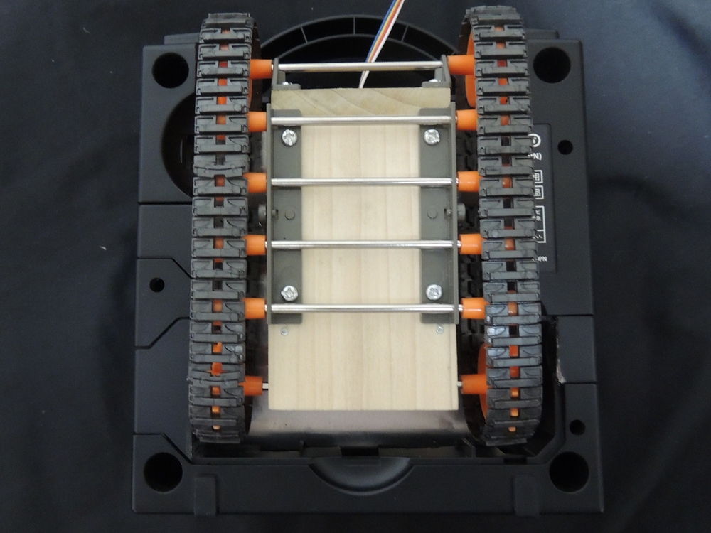アルミ板を挟む形で、タミヤのブルドーザー工作キットを突っ込んである。
