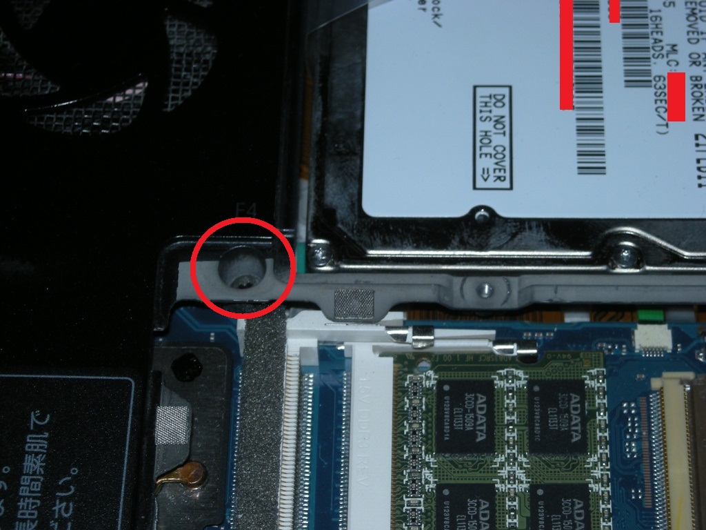 接続されている灰色と黒のケーブルを取り外し、右下の橙で囲んだネジを外します。