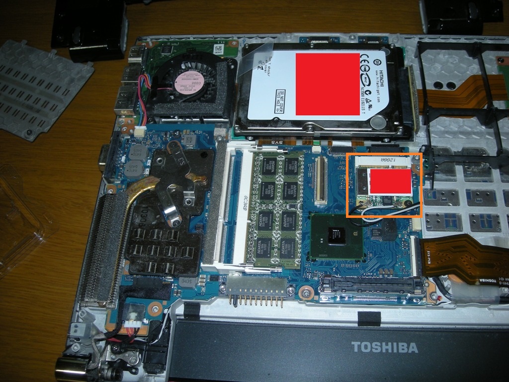 オレンジ色の四角で囲んだ部分が無線LANカードです。