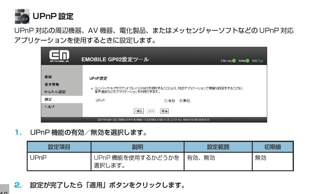 EMOBILE の無線ルーター、GP02です。