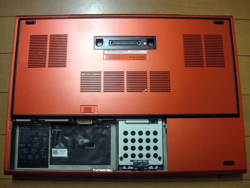 バッテリーを外して、中の2本のネジを取ると底面のカバーが取れます。