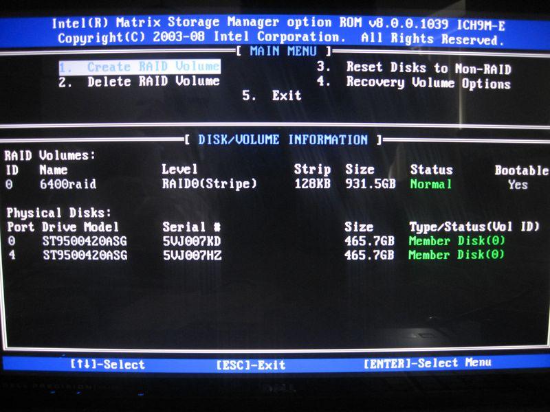 M6400のRAIDはインテルノハブアーキテクチャICH9M-Eで制御されてます。