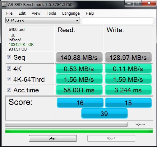 ハードディスクは1TBの容量のRAID0だったので比較はできないのですけれど、8分程度で終了しています。