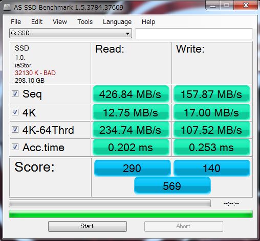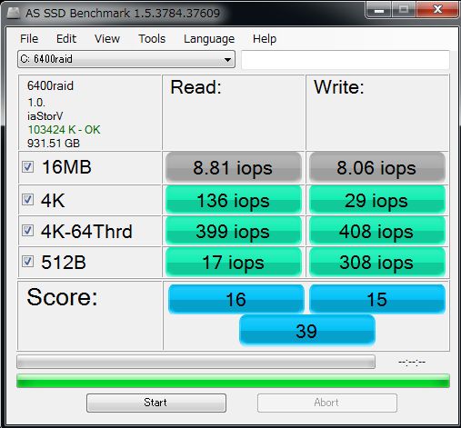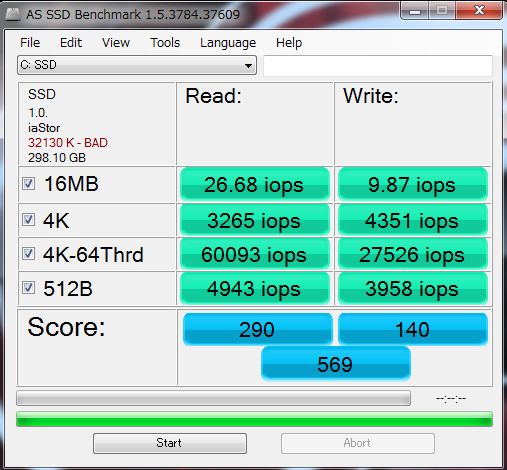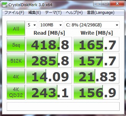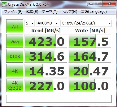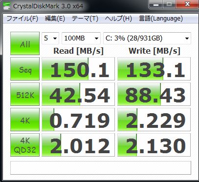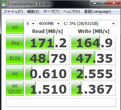 ハードディスクのNCQ(Native Command Queuing)が計測できるのですけれど、4Kと4KQD32を比較すればQD32の数値が上昇しないと困るんです。