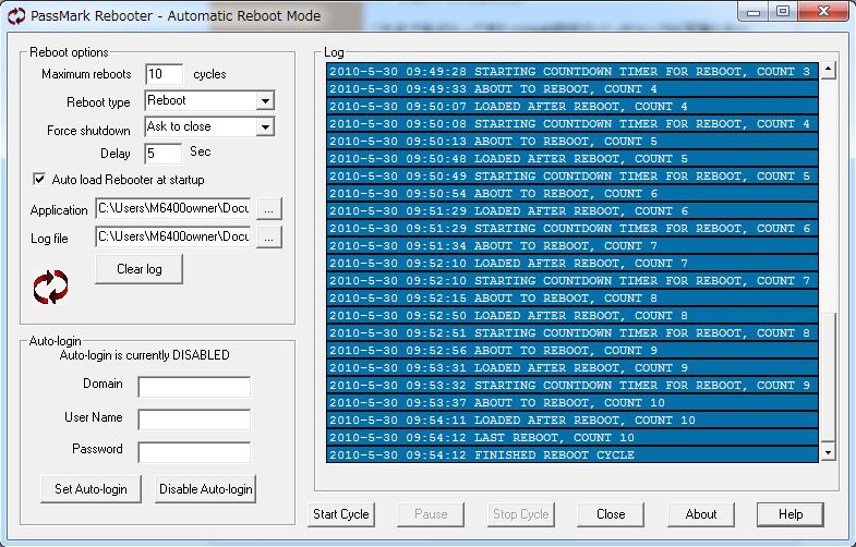 標準設定で10回再起動を繰り返しました。