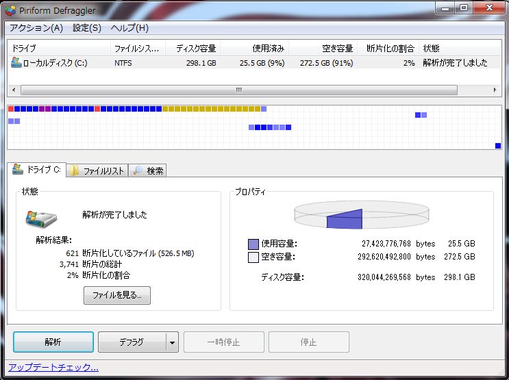SSDに搭載されているフラッシュメモリの書き換え回数には上限があるので、寿命が短くなるからデフラグしない方がいいよという話もありますが私は俄然デフラグ派です。
