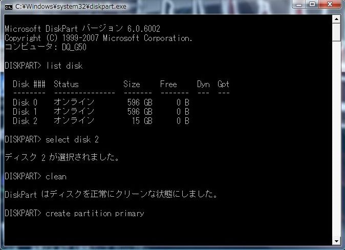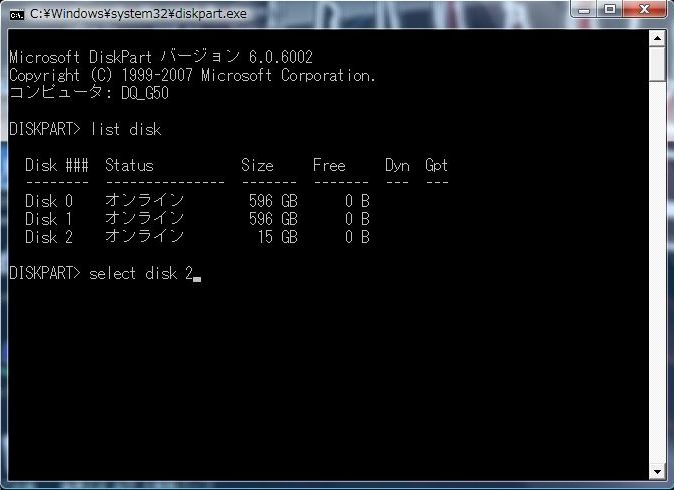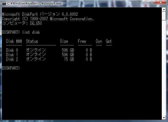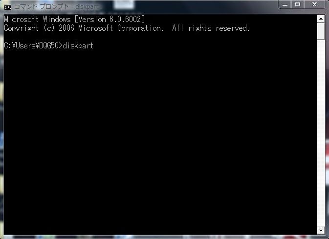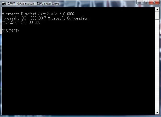 たしかVistaからコマンドが増えたのだと思いますが diskpart というのを実行してみます。