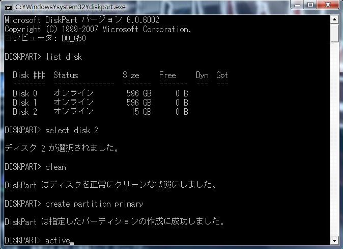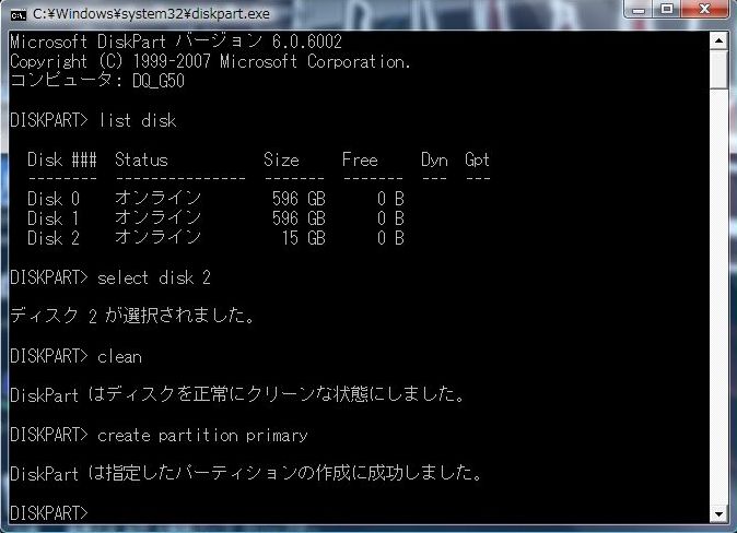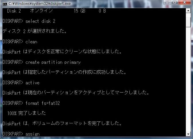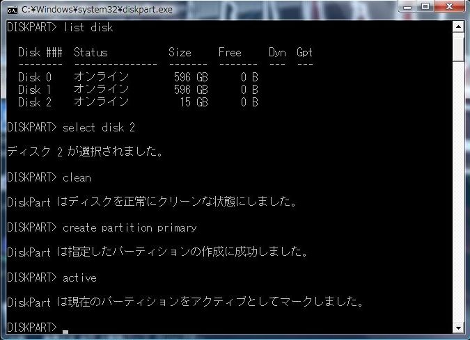 DISKPART> と表示されるようになりました。