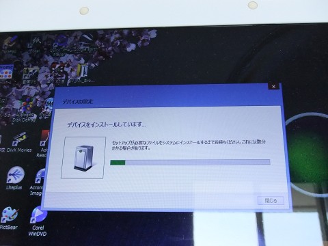 デバイスのインストール画面が表示されます。しかしそれが消える前に