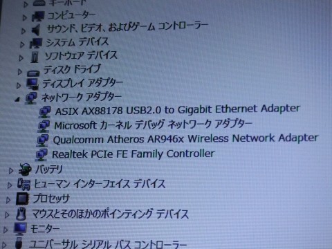 デバイスマネージャではASIX AX88178 USB2.0 to Gigabit Ethernet Adapterと認識されて